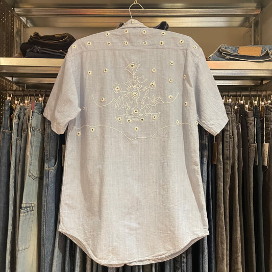 Light Blue Studded Denim Short Sleeve Shirt