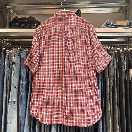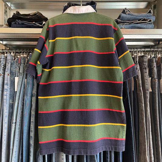 Striped Short-Sleeve Shirt White Black Double-Stitched