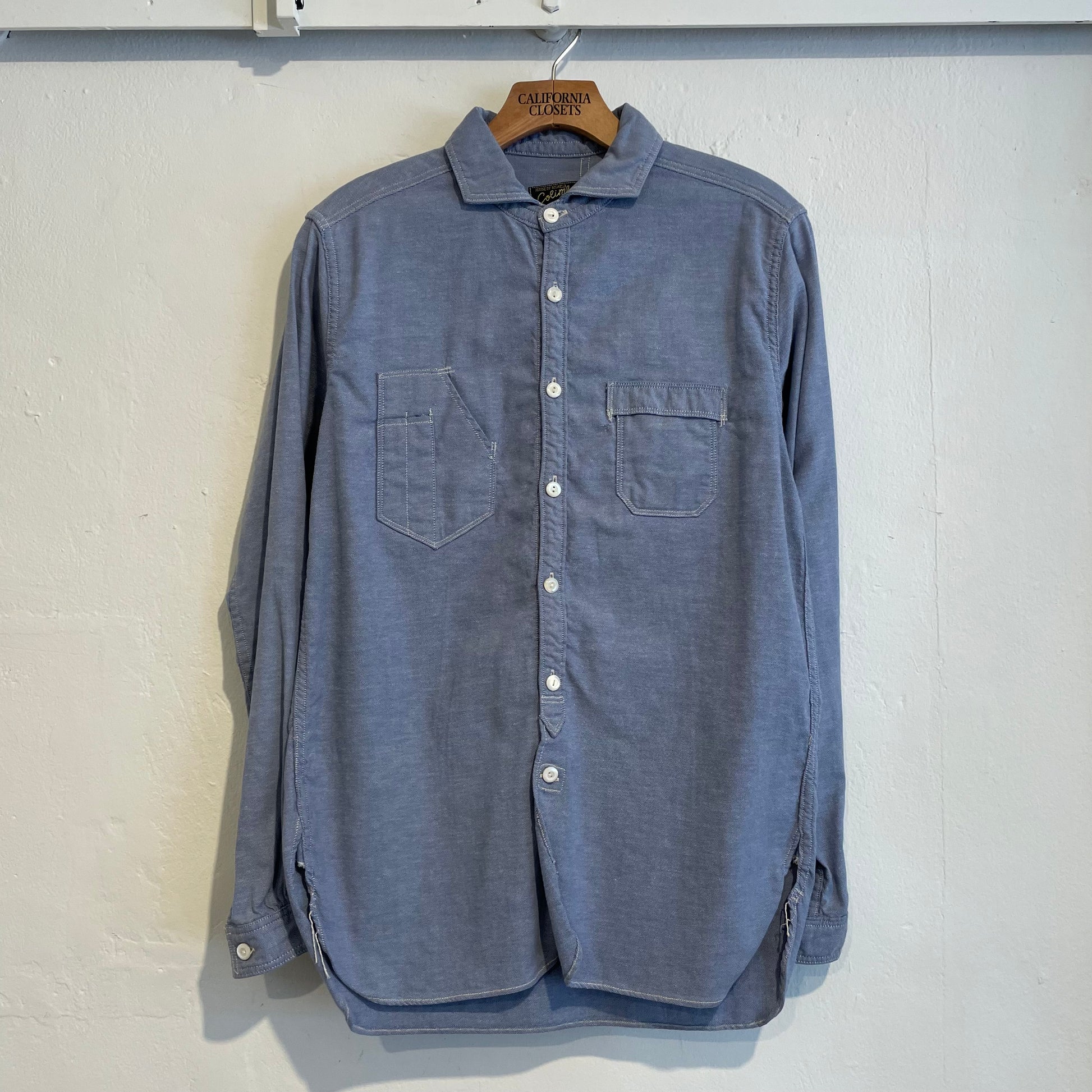 Chambray Band Collar Work Shirt Light Blue