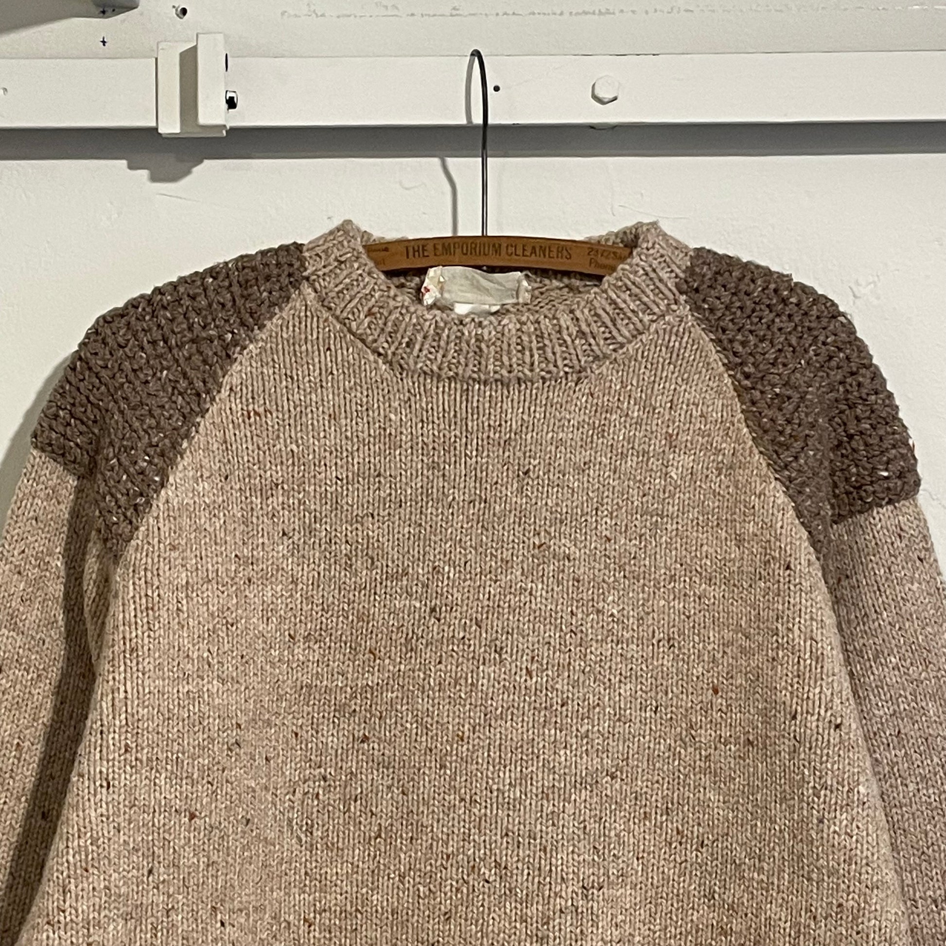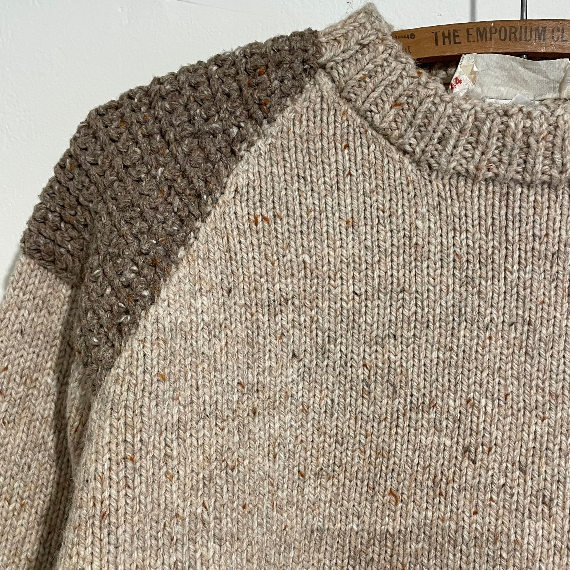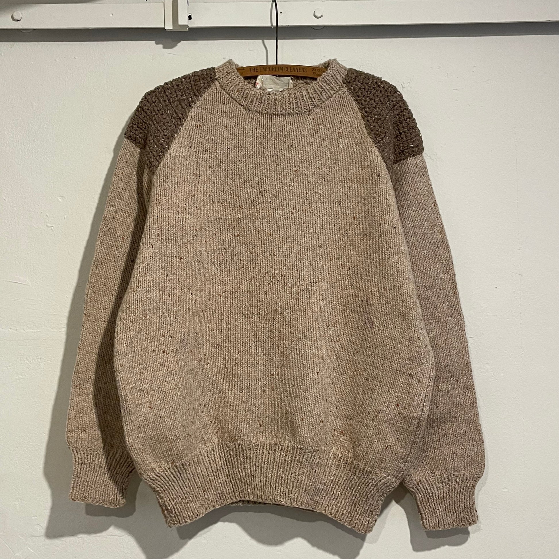 Elbow Patch Hand Knit Sweater Beige